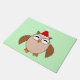 This awesome doormat features a funny cartoon of a Christmas owl with sleepy eyes, a small orange beak and cute little orange feet. The owl is brown with a cream belly and is wearing a red and white Santa hat ready for Christmas.