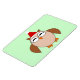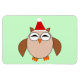 This awesome magnet features a funny cartoon of a Christmas owl with sleepy eyes, a small orange beak and cute little orange feet. The owl is brown with a cream belly and is wearing a red and white Santa hat ready for Christmas.