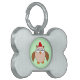 This awesome pet tag features a funny cartoon of a Christmas owl with sleepy eyes, a small orange beak and cute little orange feet. The owl is brown with a cream belly and is wearing a red and white Santa hat ready for Christmas.