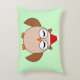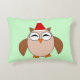 This awesome pillow features a funny cartoon of a Christmas owl with sleepy eyes, a small orange beak and cute little orange feet. The owl is brown with a cream belly and is wearing a red and white Santa hat ready for Christmas.