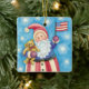Cute Christmas, Patriotic Santa Claus with Flag Ceramic Ornament