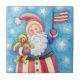 Cute Christmas, Patriotic Santa Claus with Flag Ceramic Tile