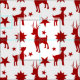 Fabric with a seamless repeating pattern with red silhouettes of stars and reindeer, a cute Christmas pattern