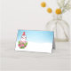 Place cards with a cute and whimisical design featuring an adorable penguin wearing a red santa hat. Standing behind a bouquet of flowers with pink and white striped candy canes. A snowy winter background with snowflakes falling.