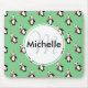This graphic design illustration features cute Christmas penguins. These adorable waddling black and white penguins are wearing a red scarf and red hat. Overlaying the background is a white monogram circle seal to easily personalise with your own initial and name. This product is fun to keep for yourself or give to a friend as a keepsake gift. Change the font colour, font style or add your own photos by clicking the “Customise it” button.