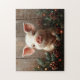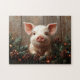 Cute Christmas Pig Rustic Painting Jigsaw Puzzle