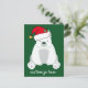 Cute Christmas Polar Bear in Santa Hat Green Postcard