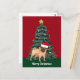 This beautiful custom Christmas postcard features a cute pug wearing a Santa Claus hat in front of a pretty Christmas tree decorated with colourful ornaments. Perfect pet owner postcards with an adorable dog drawing.