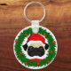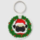 Cute Christmas Pug Santa in Wreath Key Ring