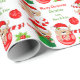Three cute little brown puppies are frolicking on this personalised kids Holiday wrapping paper. One puppy rides a red and white striped candy cane, one hugs a red Christmas tree bulb, and one holds a bright green gift. Each of the puppies wears a Santa hat and striped scarf. Your custom text is in red and green, and it's easy to customise the text. Adorable! *Design credit for the images is to Premium Clipart on Etsy.