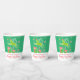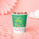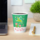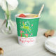 Personalise these festive Christmas paper cups with your own name. Fun Christmas green, bright red and white design of a reindeer with a red nose prancing over boxed Christmas gifts. Ideal for easy Christmas parties with family, friends or clients. © Original art and graphic design by Sarah Trett for www.mylittleeden.com on Zazzle.