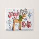 Cute Christmas Reindeer, Jingle Bells Snowflakes Jigsaw Puzzle