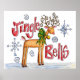 Cute Christmas Reindeer, Jingle Bells Snowflakes Poster