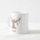 Cute Christmas Reindeer Ornaments | Rustic Wood Coffee Mug featuring a cute festive holiday deer festooned with woodsy ornaments, against a rustic white wood background. Easy to personalise; makes a great gift for a friend, family member, or just for yourself!