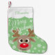 Cute Christmas Reindeer Teal White Script Name Small Christmas Stocking