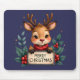 Cute Christmas Reindeer with Holly and Sign Mouse Pad