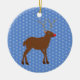 This ornament features a graphic design image of a cute Christmas Reindeer with a bright shiny red nose. The Reindeer is brown and furry, she has large antlers and dark brown hooves. Her eye is black and she has a big smile on her face.
