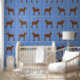 This awesome patterned wallpaper features a graphic design image of a cute Christmas Reindeer with a bright shiny red nose. The Reindeer is brown and furry, she has large antlers and dark brown hooves. Her eye is black and she has a big smile on her face.