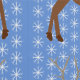 There are snowflakes surrounding the Reindeer and the background is blue.