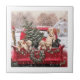Cute Christmas Retro Red Truck With Puppies Dogs Ceramic Tile