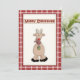 This fun, festive Christmas Party invitation has a plaid pattern background in red and white with fun Christmas font and a whimsical illustration of Rudolf the red nose reindeer with plaid neck scarf and a Christmas tree bauble. The reverse of the invitation has text in shades of red and green and the same little reindeer again. Incoporates some graphics by Whimsy Primsy.