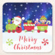 Cute Christmas Santa and Elf Train Square Paper Coaster