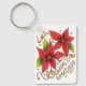 Cute Christmas Season's Greetings with Poinsettias Key Ring