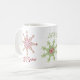 This Christmas mug features a simple, minimalist design with festive red and green snowflakes, creating a cute, whimsical, and fun holiday vibe. Perfect as a holiday gift idea, this custom coffee cup brings seasonal cheer to every sip. A cosy and charming addition to your Christmas mornings or winter beverage moments. ☕🎄✨