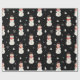 Cute Christmas Snowman Black Wrapping Paper