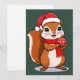 This adorable design features a brown squirrel wearing a red and white Christmas hat and a red scarf with white fringe. The squirrel is standing on its hind legs and holding a red Christmas ornament decorated with white snowflake patterns. This design is perfect for Christmas decorations or illustrations, adding a touch of charm and festivity to the holiday season.