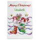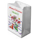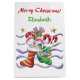 This festive Holiday gift bag features a cute image of a cartoon bunny rabbit popping out of a red and green striped Christmas stocking. Two additional stockings full of gifts and candy canes complete the image, and everything is placed on a crisp white background. Easily place your own text and name in the customisation fields to personalise this bag. Festive, unique, and colourful! Kids will love it! Both sides of the bag have the same image.