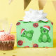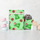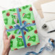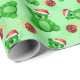 A cute Christmas pattern of smiling teddy bears wearing red and white Santa hats along with red ornaments with gold stars and ribbons.