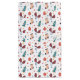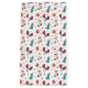 Cute Christmas themed gift bag featuring a repeat pattern of green Christmas trees, warm woolly mittens, cute stockings and red baubles on a white background.