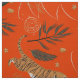 Cute Christmas trees and tigers in a seamless pattern on a custom orange background.