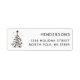 This return address label features a simple white Christmas tree with a star, round ornaments, and snow. For more advanced customisation of this design, please click the "customise further" link.