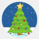 Cute Christmas tree in green with colourful ornaments and yellow star.  White snow along the ground and a dark starry night background.  Celebrate the holidays with a cute Christmas tree decoration. All Designs Copyright © 2012 www.CuteComfy.com