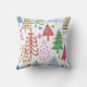 This cute holiday throw pillow will add cheer to your holiday home decor. It features a whimsical pattern of Christmas trees in red, green, pink and blue illustrated by world renowned artist Tim Coffey.