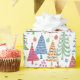 Cute Christmas Tree Red Green Pink Blue Pattern Wrapping Paper
