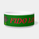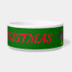 This awesome dog bowl features a funny cartoon of a Christmas turkey with big black eyes, a small yellow beak and tail feathers sticking up. The feet are facing in opposite directions making the turkey look clumsy. The turkey is wearing a red and white Santa hat and is ready for Christmas.The festive red text is customisable allowing you to personalise this dog bowl with the name of your dog.