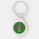 This awesome keychain features a funny cartoon of a Christmas turkey with big black eyes, a small yellow beak and tail feathers sticking up. The feet are facing in opposite directions making the turkey look clumsy. The turkey is wearing a red and white Santa hat and is ready for Christmas.