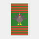 This awesome pack of paper napkins features a funny cartoon of a Christmas turkey with big black eyes, a small yellow beak and tail feathers sticking up. The feet are facing in opposite directions making the turkey look clumsy. The turkey is wearing a red and white Santa hat and is ready for Christmas.
