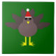 This awesome tile features a funny cartoon of a Christmas turkey with big black eyes, a small yellow beak and tail feathers sticking up. The feet are facing in opposite directions making the turkey look clumsy. The turkey is wearing a red and white Santa hat and is ready for Christmas.