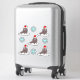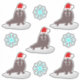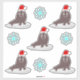 This awesome shaped sticker sheet features a graphic image of a cute little Christmas Walrus. The Walrus has brown fur with big black eyes and white tusks. It is sitting on an iceberg in the middle of the ocean and wearing a red and white festive hat. The walrus is surrounded by pretty octagonal blue snowflakes falling down all around it.