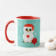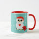 Cute Christmas white owl and snowflakes on teal Mug.
