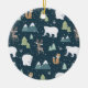 Cute Christmas Winter Animals Rustic Pattern Ceramic Ornament