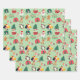 Cute Christmas Wrapping Paper Flat Sheet Set of 3