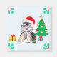Cute Christmas Yorkshire Terrier puppy dog on light blue background magnet. Ideal for everyone during Christmas or winter season. Text can be personalised.