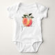 This baby one piece jumper features a watercolor peach and a cute handwritten font and the saying "Little Peach". This jumper is perfect for announcing a new baby in the family or as a baby shower gift.