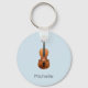 Cute classical music keychain with a violin image on a pale blue background. With black customizable lettering, you can add your own information. A great gift for the musician in your life.