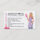This cleaning business card features a charming illustrated housekeeper in a stylish apron, holding a feather duster. Designed for professional cleaners, housekeepers, and cleaning companies, it includes space for contact details, services, and a QR code for easy access to pricing or bookings. The soft purple and pink colour scheme adds a warm, welcoming touch, making it a friendly yet professional networking tool.